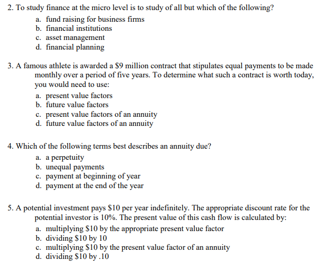Solved 2 To Study Finance At The Micro Level Is To Study Of Chegg Com